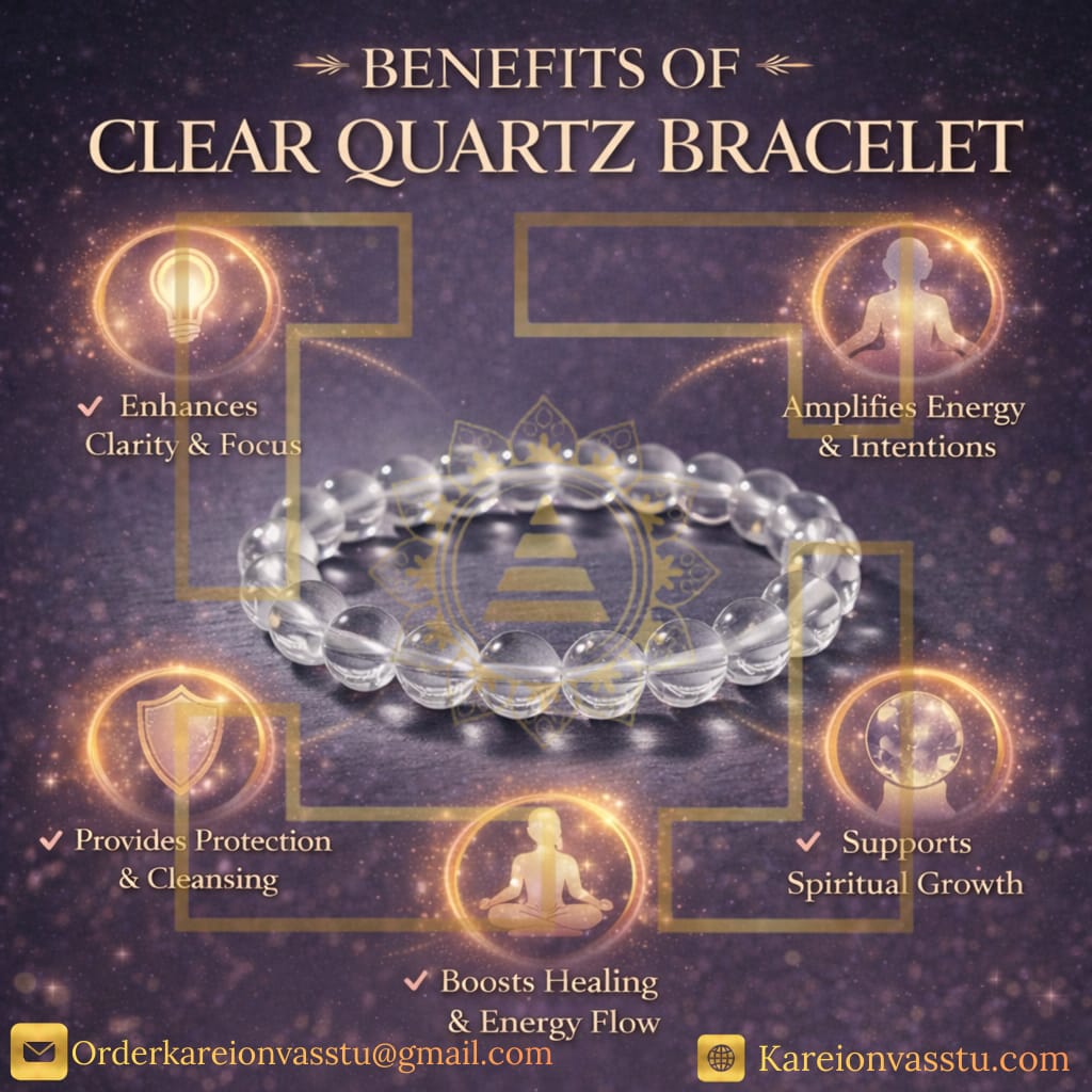 A Clear Quartz Bracelet is often called the “Master Healer” or the “Universal Crystal” in the world of gemstones and Vastu. It is a powerful, high-vibration tool that is prized for its ability to clear the mind and amplify the energy of the wearer.
