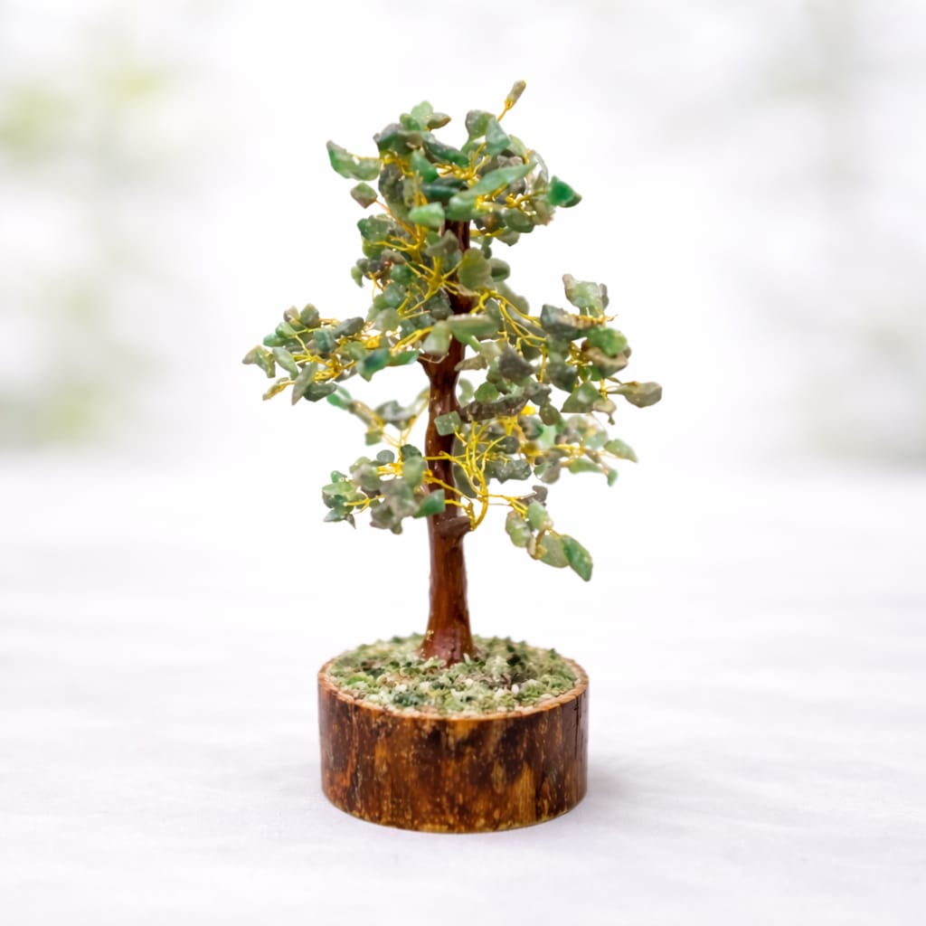Appearance: The tree features “leaves” made of polished, translucent green aventurine stones. The green can range from a light leafy shade to a deep forest green.