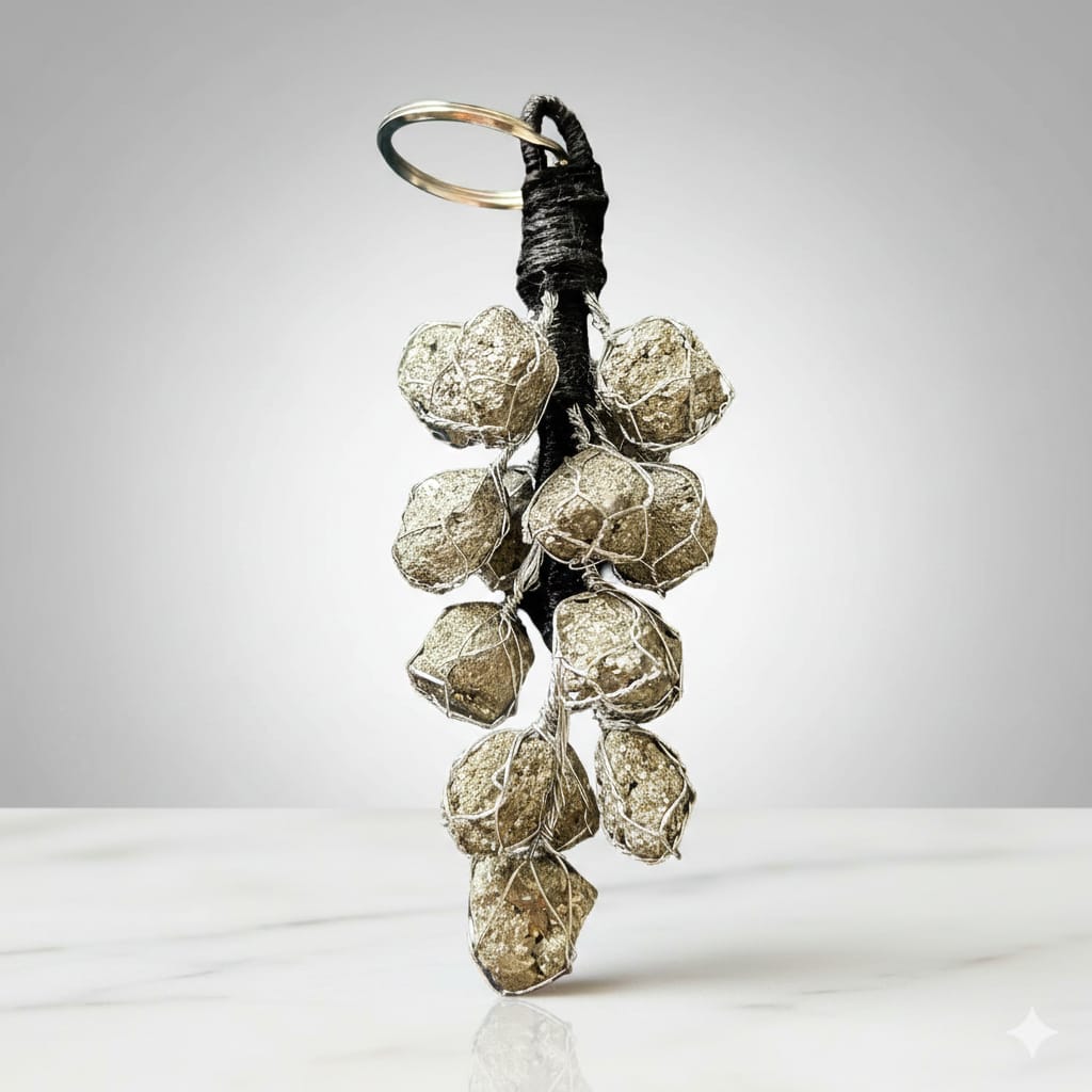 A Hanging Pyrite (often found as a cluster or a string of raw nuggets) is a high-vibrational Vastu remedy used to create a “Protective Wealth Shield.” While a Pyrite bracelet protects the person and a Pyrite cluster stabilizes a desk, a Hanging Pyrite is designed to filter the energy entering a specific space.